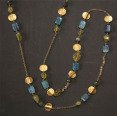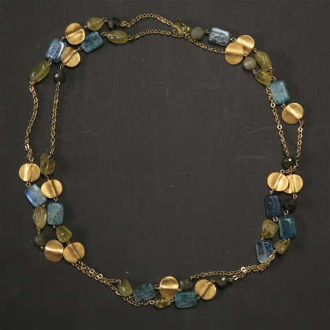 Groene kwarts, kyaniet en labradoriet, afwerking in verguld zilver.