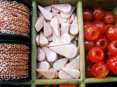 Nog goed nieuws: de prijzen zijn zeer redelijk. Enerzijds omdat de kralen minder groot zijn dan vorige seizoenen, anderzijds omdat we een aantal nieuwe leveranciers vonden en scherpe prijzen konden bedingen (Renate beweert dat ik bij de onderhandelingen altijd dodelijk ernstig kijk, alsof het voortbestaan van Zahia ervan afhangt!)