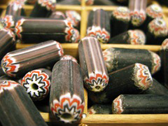 En voor wie meer van een etnische look houdt zijn er ook verschillende nieuwigheden. Ook uit India zijn deze chevrons, met paars-grijze ondertoon. Ongeveer 3cm lang. Ze combineren mooi met deze nieuwe grijs-beige kralen. De chevrons kosten maar 1 € (echt een superkoopje als je weet hoeveel werk er in het maken één kraal kruipt!), de andere kralen kosten 0,50 €.