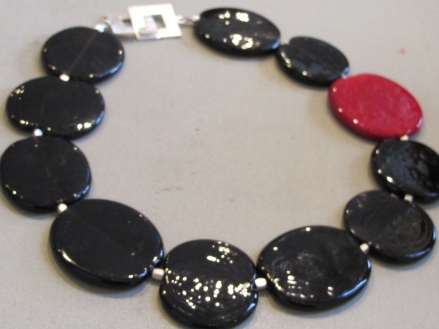 Voor een sterke look: combineer zwart met mahonie of met tomatenrood. Eventueel met een rood accessoire: een rood halssnoer of een rode handtas.