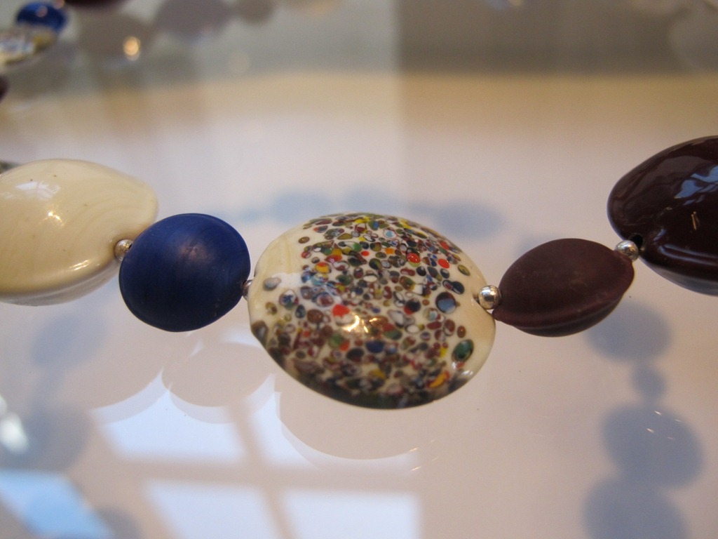 Zoals je ziet kan je met deze vintage Klimt-kralen werkelijk alle richtingen uit: je combineert ze met koele of met warme kleuren, je maakt er een licht of een donker halssnoer van… Het kleinste maatje is ideaal als tussenkraal of voor oorringen: