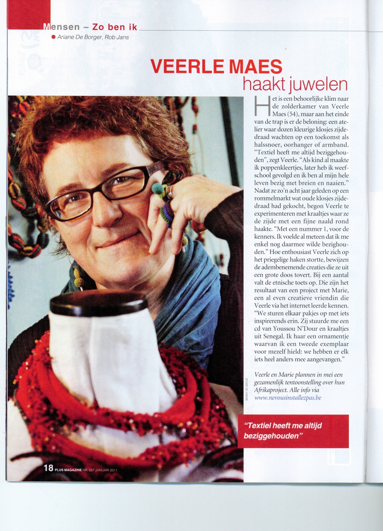 Ga zeker kijken naar de mooie website van Veerle, haar blog is geïllustreerd met prachtige foto’s van haar werk. Toevallig staat er ook een artikel over Veerle in het januari-nummer van Plus Magazine.