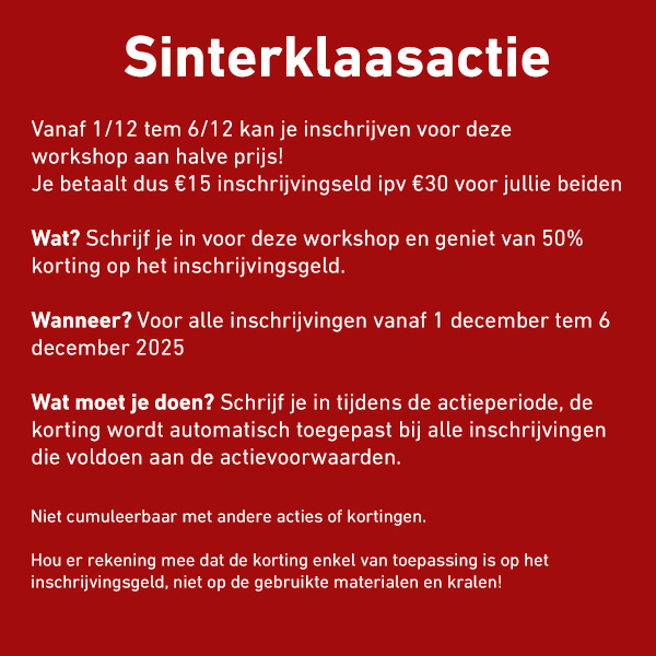 Deze workshop is voor kinderen van 6 tot 12 jaar met een begeider.