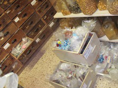 Dan naar de stockruimte: a beader’s heaven! Wanden en wanden vol lades en bakken, en ik mag overal in kijken!